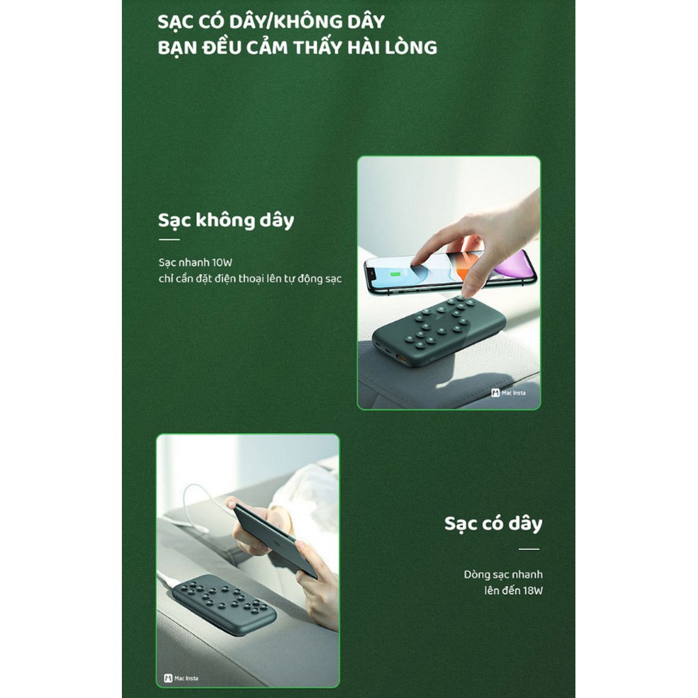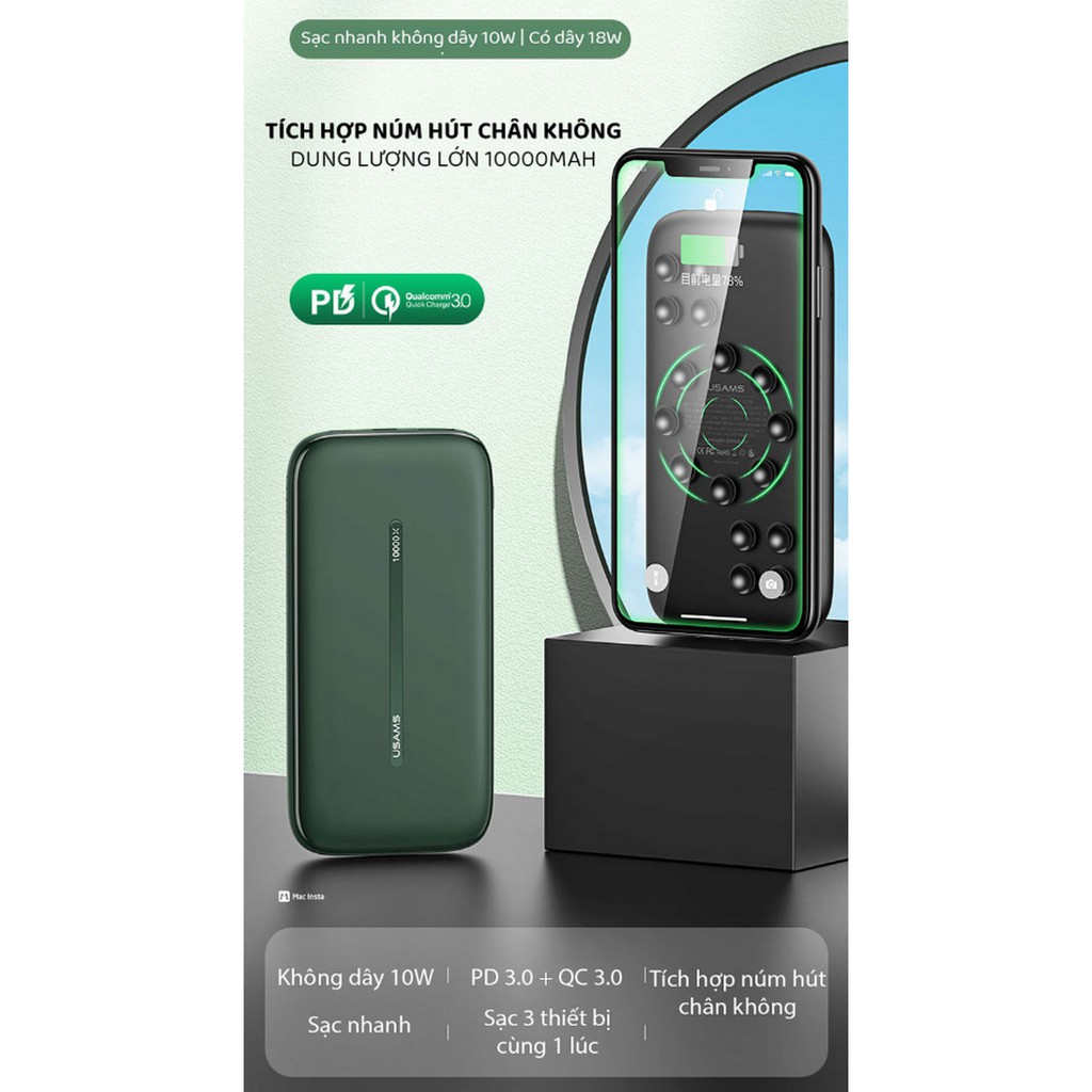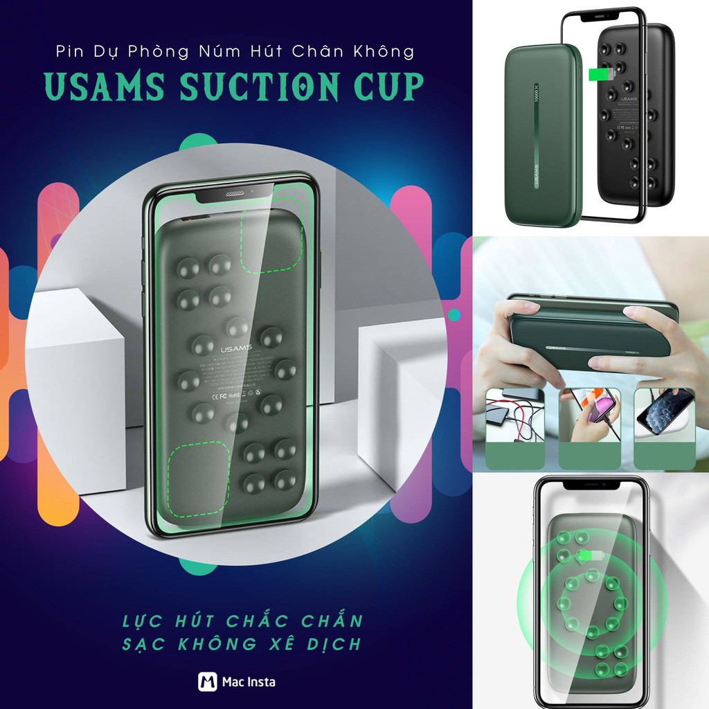 PIN DỰ PHÒNG NÚM HÚT CHÂN KHÔNG USAMS SUCTION CUP: CÁCH THỨC MỚI LẠ, ĐA DẠNG TRẢI NGHIỆM"Không đơn giản chỉ là đặt điện thoại lên trên cục pin dự phòng, PIN DỰ PHÒNG NÚM HÚT CHÂN KHÔNG USAMS SUCTION CUP còn tích hợp 16 núm hút chân không, giúp giữ chặt điện thoại và pin dự phòng trong quá trình sạc. Bên cạnh đó bạn cũng có thể lựa chọn sạc theo cách thức có dây hoặc không dây, dễ dàng lựa chọn quá phải không nào?