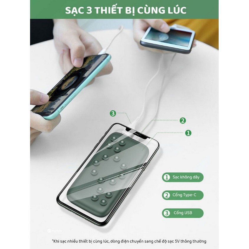 - Dung lượng lớn 10000mah sạc được 3 điện thoại cùng 1 lúc