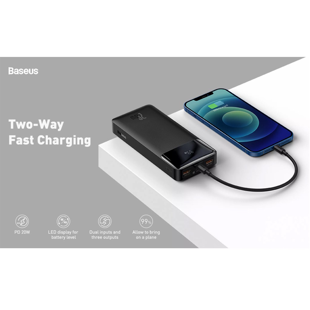 Pin dự phòng PD 20W Baseus Bipow Digital Display sạc nhanh 3A, dung lượng 20000mAh, có đèn LED hiện thị, 3 cổng Output
