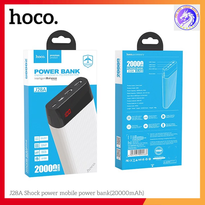 Điện Thoại & Phụ Kiện > Phụ kiện > Sạc dự phòng & Pin > Sạc dự phòng || PIN DỰ PHÒNG POLYMER A+ 2 CỔNG USB 2.0A 20000MAH HOCO J28A - MÀN HÌNH LEDCòn hàng