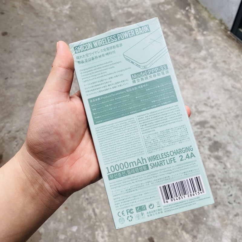 Điện Thoại & Phụ Kiện > Phụ kiện > Sạc dự phòng & Pin > Sạc dự phòng || Pin dự phòng proda PPP-33 dung lượng 10.000mah hỗ trợ sạc không dây wireless charging dòng ra 2,4ACòn hàng
