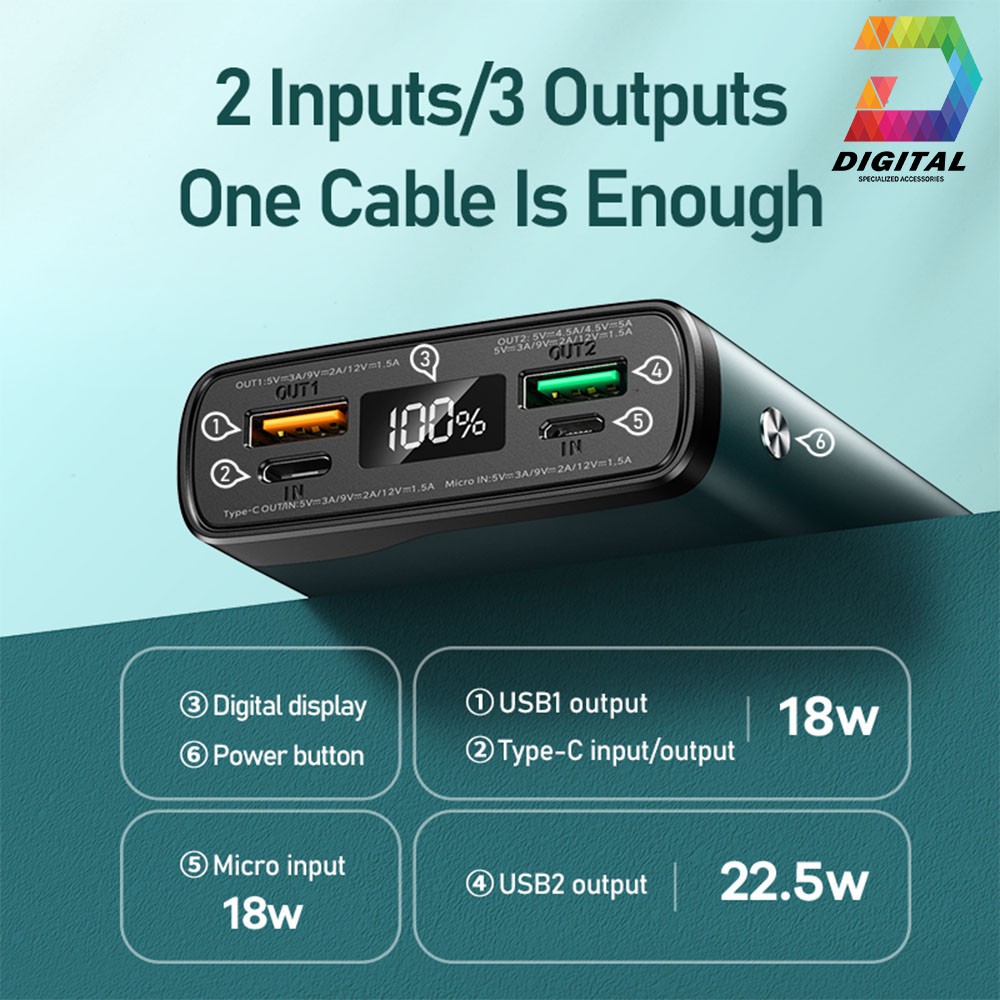 - Đầu vào của pin được trang bị cùng lúc 2 giao tiếp là 1 cổng Micro USB và 1 cổng Type C. Nó cũng đi kèm công nghệ sạc nhanh với điện áp tối đa là DC 5V/2A giúp tiết kiệm thời gian nạp đầy pin sau mỗi lần sử dụng.