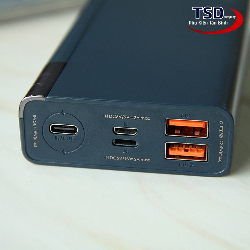 - Đầu vào của pin được trang bị cùng lúc 3 giao tiếp là 1 cổng Micro USB và 2 cổng Type C. Nó cũng đi kèm công nghệ sạc nhanh với điện áp tối đa là DC 5V/2A giúp tiết kiệm thời gian nạp đầy pin sau mỗi lần sử dụng.