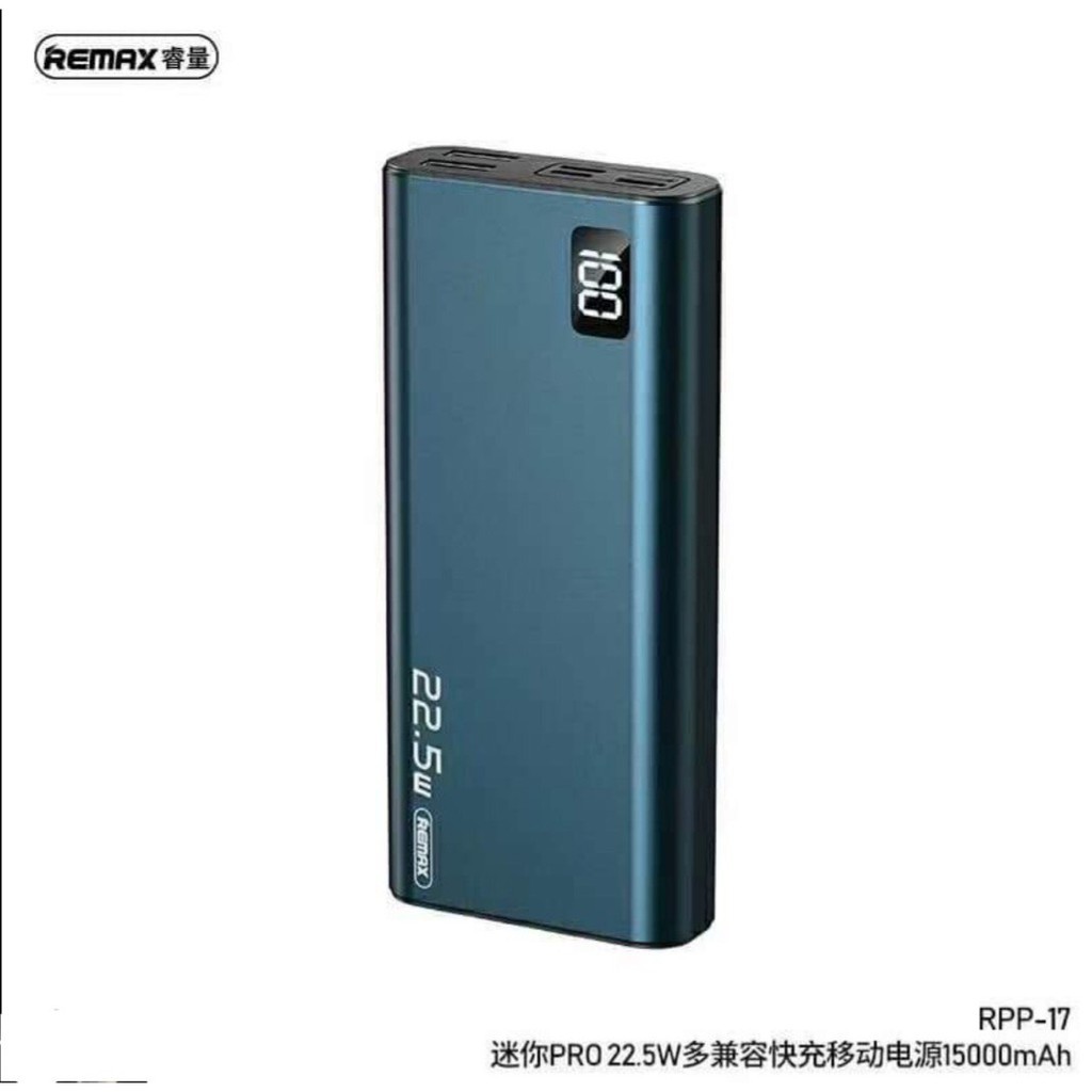 Pin dự phòng remax RPP-17 dung lượng 15.000mAh có đèn led báo pin sạc hỗ trợ 3 cổng vào lightning micro và type-C.Pin sạc dự phòng Mini Pro 15000mah Remax RPP-17 thiết kế nhỏ gọn, dung lượng lớn, công suất cao, đầu ra kép chính là lựa chọn đúng đắn dành cho bạn.