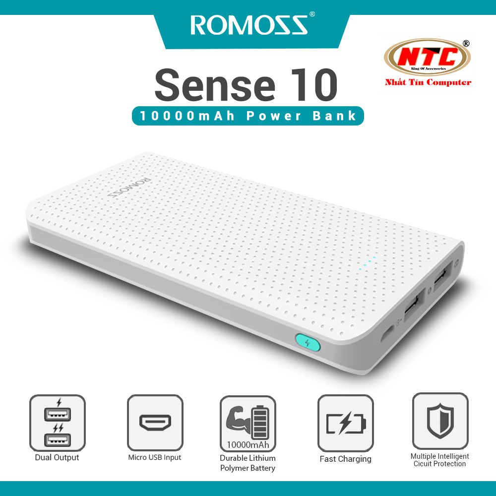 Điện Thoại & Phụ Kiện > Pin sạc dự phòng > 5000 - 10000mAh || [Mã ELFLASH5 giảm 20K đơn 50K] Pin dự phòng Romoss Sense 10 10000mAh lõi Polymer - siêu mỏngCòn hàng