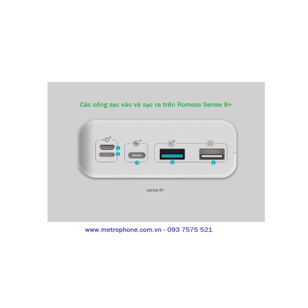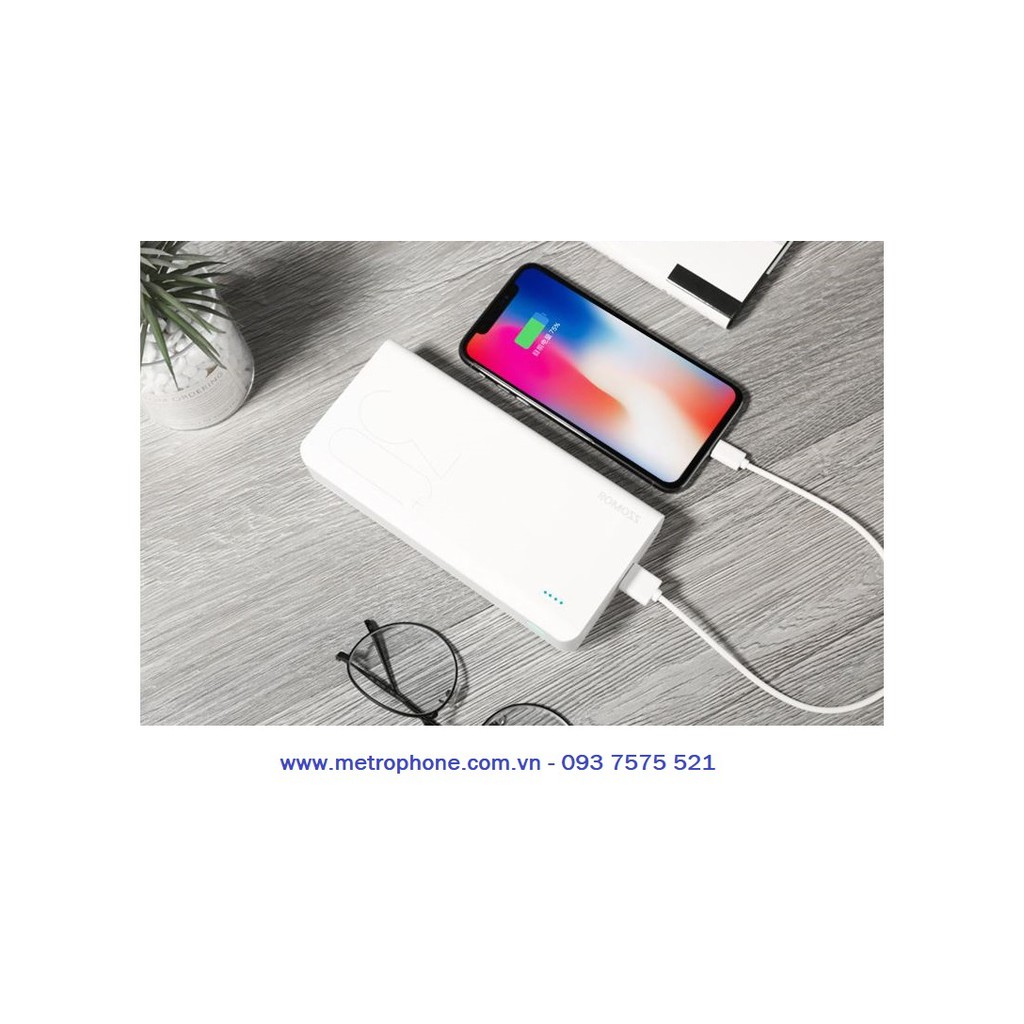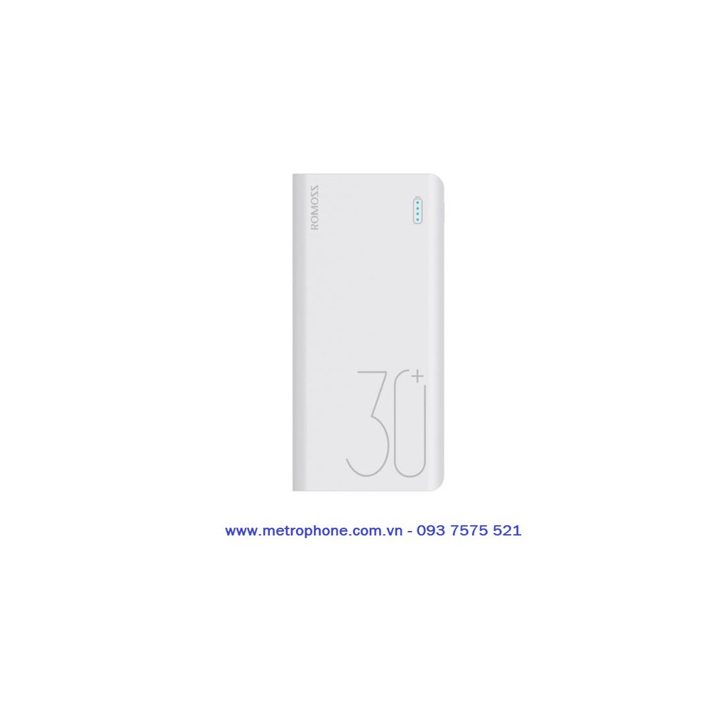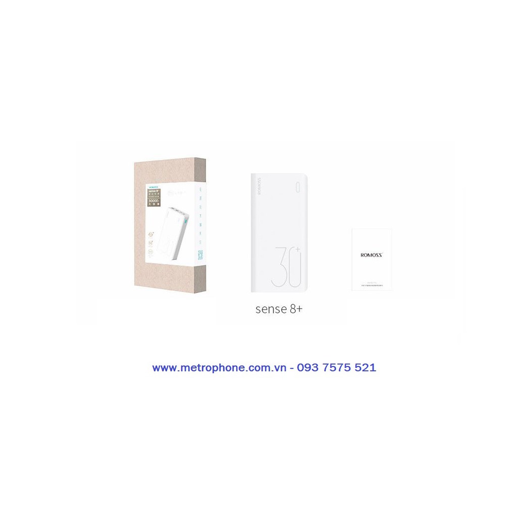 + Pin sạc dự phòng Romoss Sense 8+ 30.000 mAh sạc nhanh QC 3.0 và sạc nhanh 2 chiều Type- C+ Màu sắc : Trắng