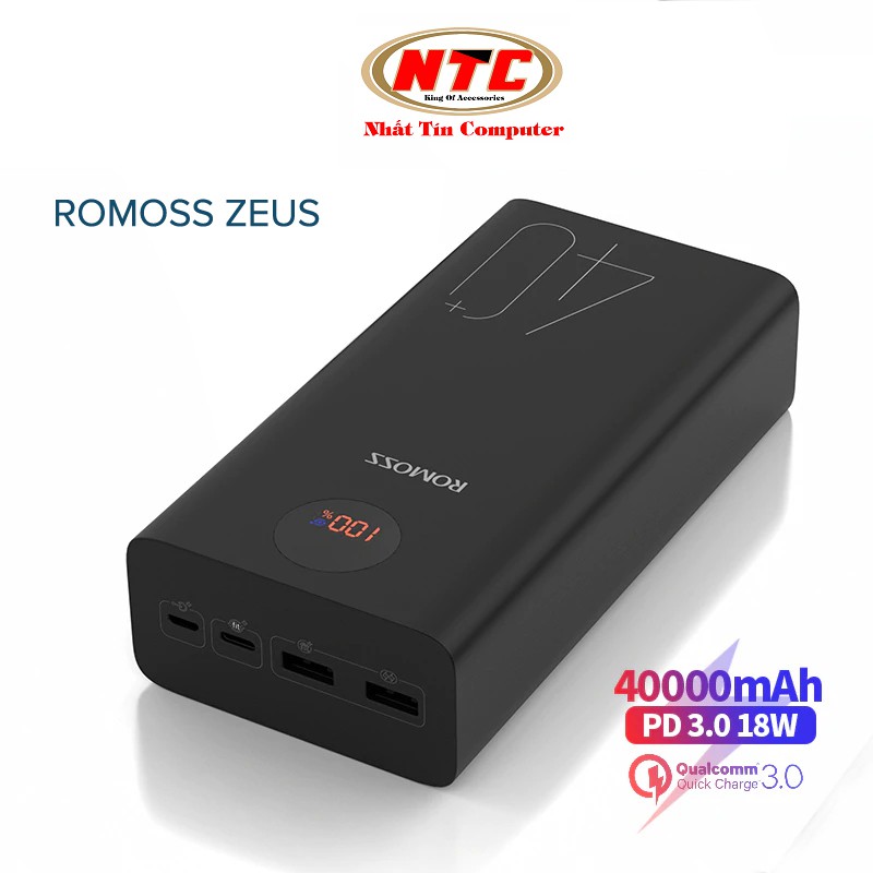 Điện Thoại & Phụ Kiện > Pin sạc dự phòng > >20000mAh || Pin dự phòng Romoss ZEUS 40+ dung lượng 40000mAh hỗ trợ sạc nhanh QC3.0 và sạc đảo chiều PD 18W (Đen)Còn hàng