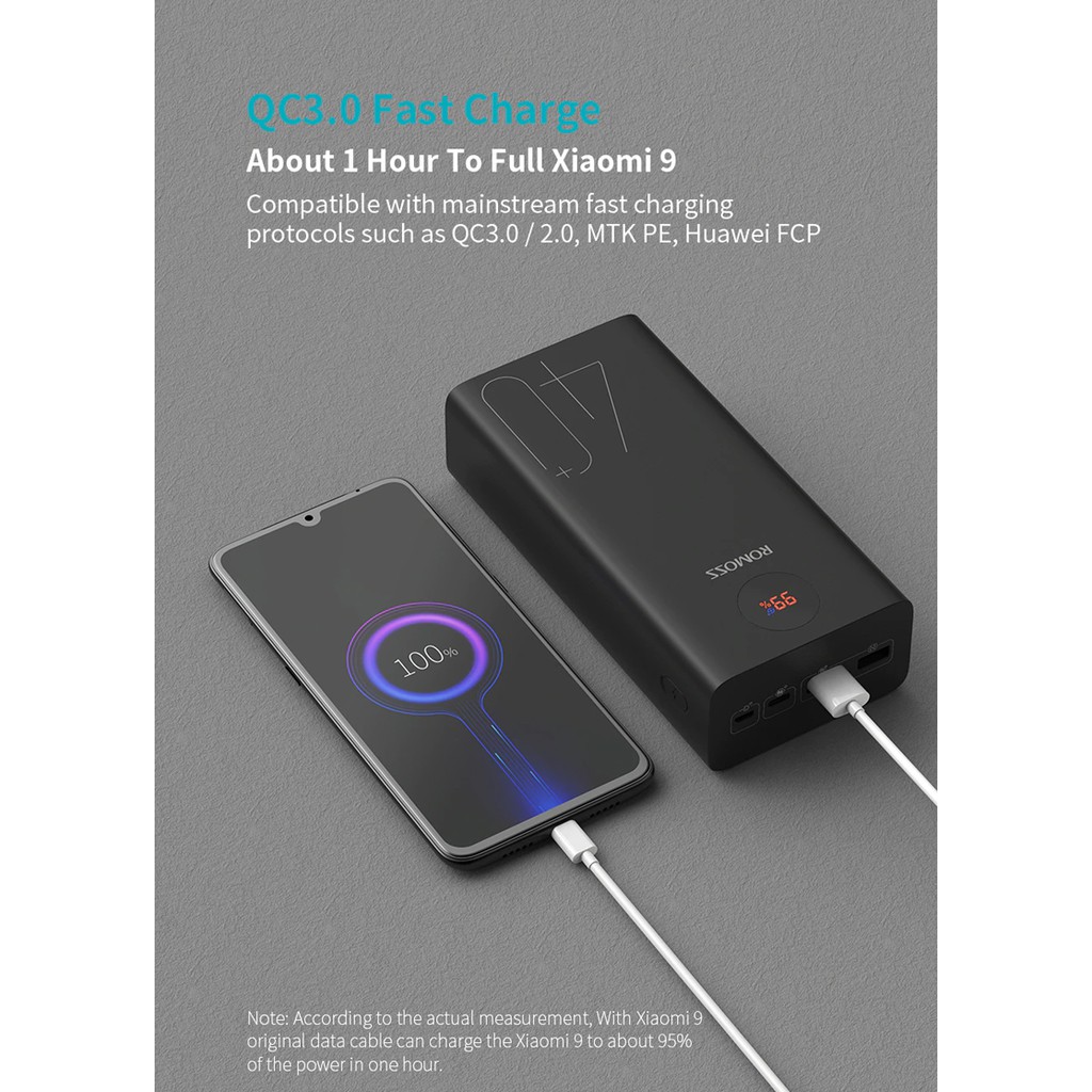 Giới thiệu Pin dự phòng Romoss ZEUS 40+ dung lượng 40000mAh hỗ trợ sạc nhanh QC3.0 và sạc đảo chiều PD 18W (Đen)