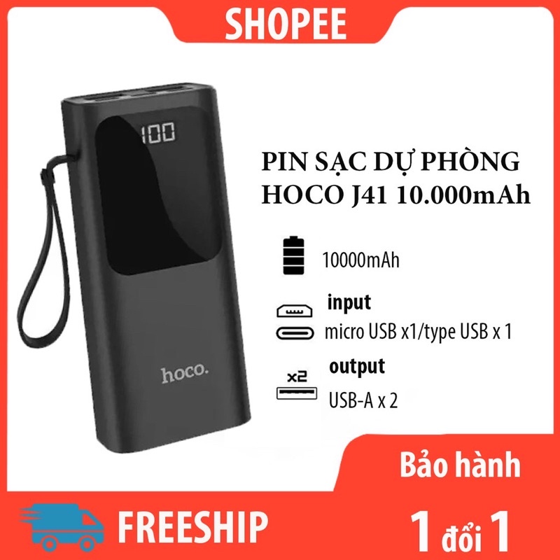 Pin dự phòng , sạc dự phòng Hoco J41 10.000mah hổ trợ sạc 2 thiết bị cùng lúc tiện dụng