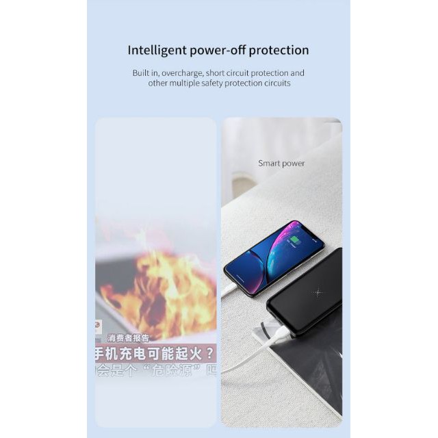 - Pin sạc dự phòng không dây Baseus M36 được tích hợp bộ xử lý nguồn thông minh có khả năng tự động nhận diện và điều chỉnh mức điện áp/ dòng điện/ công suất phù hợp với từng loại thiết bị . Khả năng ngăn ngừa quá tải, quá nhiệt và ngắn mạch .