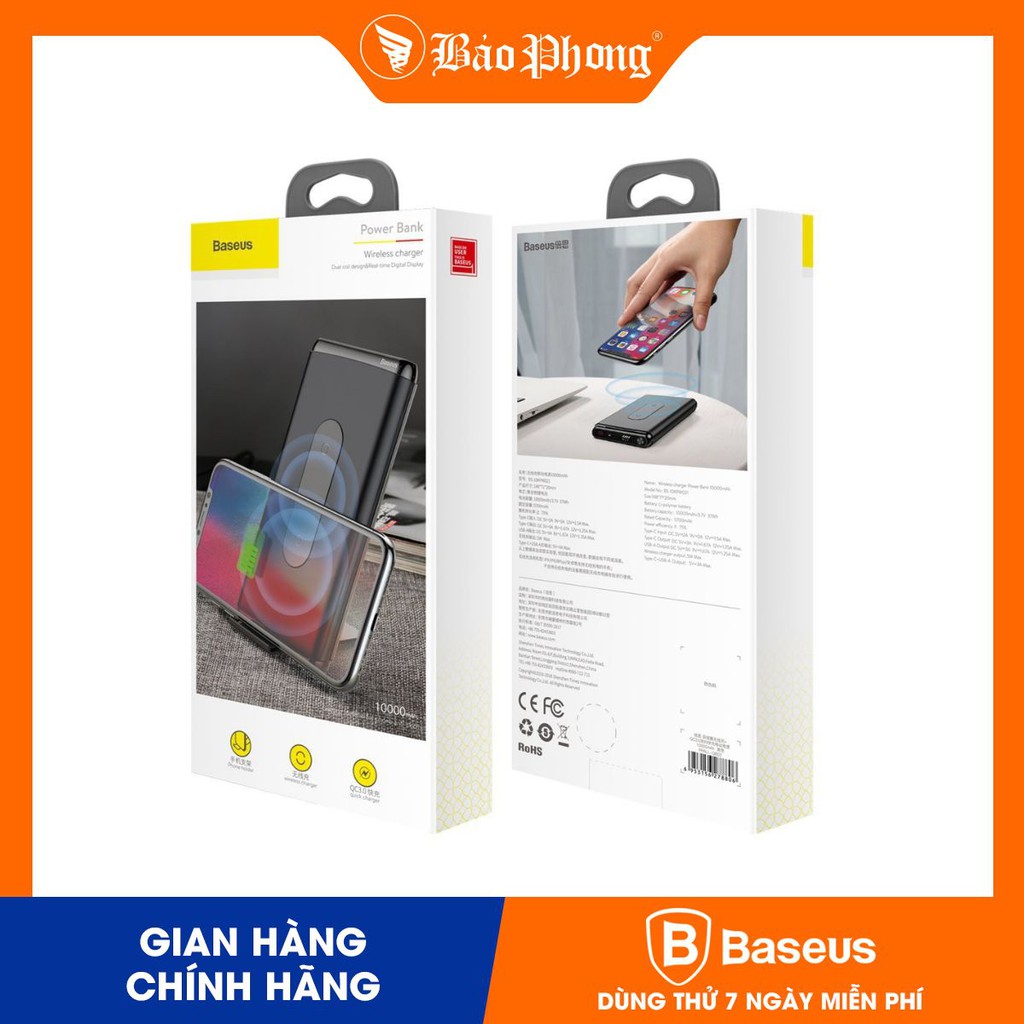 Điện Thoại & Phụ Kiện > Phụ kiện > Sạc dự phòng & Pin > Sạc dự phòng || Pin dự phòng sạc không dây BASEUS 10000 mAh(Dual coil /Typec /PD+QC3.0 input/output 15WCòn hàng