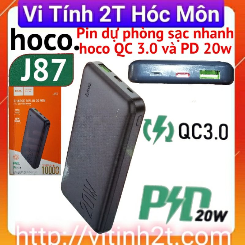 Pin dự phòng sạc nhanh 10.000mah hoco J87 QC 3.0 và PD 20w