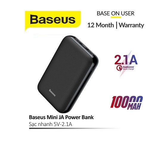 Pin dự phòng sạc nhanh 2.1A Baseus Mini JA dung lượng 10000mAh kích thước siêu nhỏ cho Smartphone/Tablet"Bảo hành: 12 tháng, 1 đổi 1 trong tháng đầu nếu lỗi do nhà sản xuất.