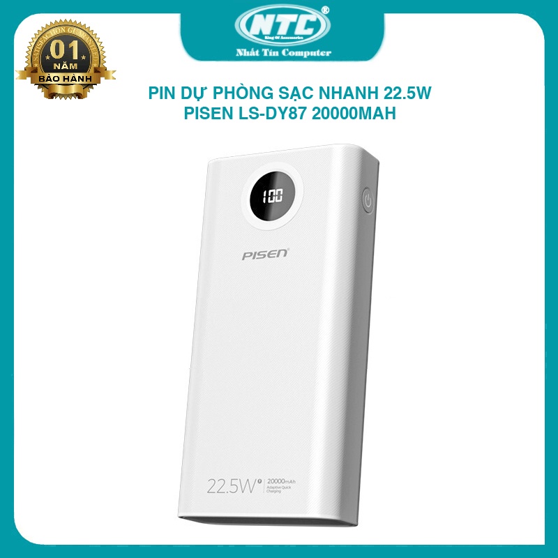 Giới thiệu Pin dự phòng sạc nhanh 22.5W Pisen LS-DY87 dung lượng 20000mAh có LCD - hỗ trợ QC 3.0/ 2.0/ PD (Trắng)