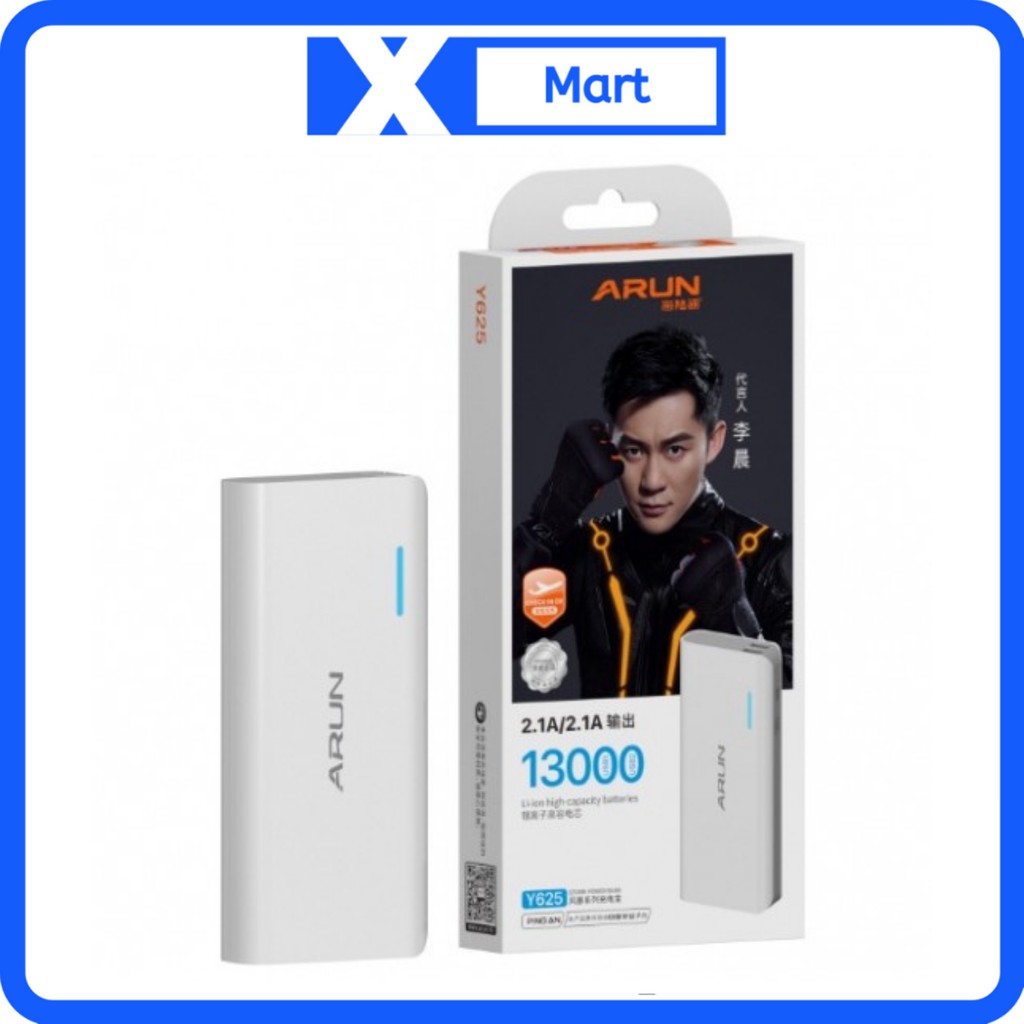 MÔ TẢ CHI TIẾT về Pin dự phòng sạc nhanh ARUN 2 cổng USB 13.000mah chính hãng - Sạc dự phòng dùng được cho nhiều dòng điện thoại- Pin sạc dự phòng Arun 13.000 mAh chính hãng được thiết kế với kiểu dáng khỏe khoắn, kết hợp với tông màu trắng. Bề mặt được phủ một lớp sơn sáng bóng.