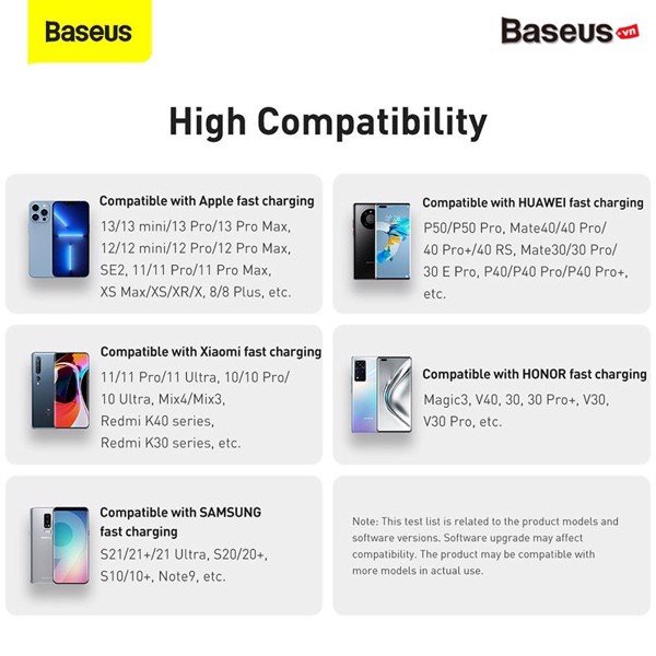 - Hỗ trợ nhiều mức cấu hình và công suất khác nhau gồm SCP, PD, QC... Tương thích với hầu hết các chuẩn sạc