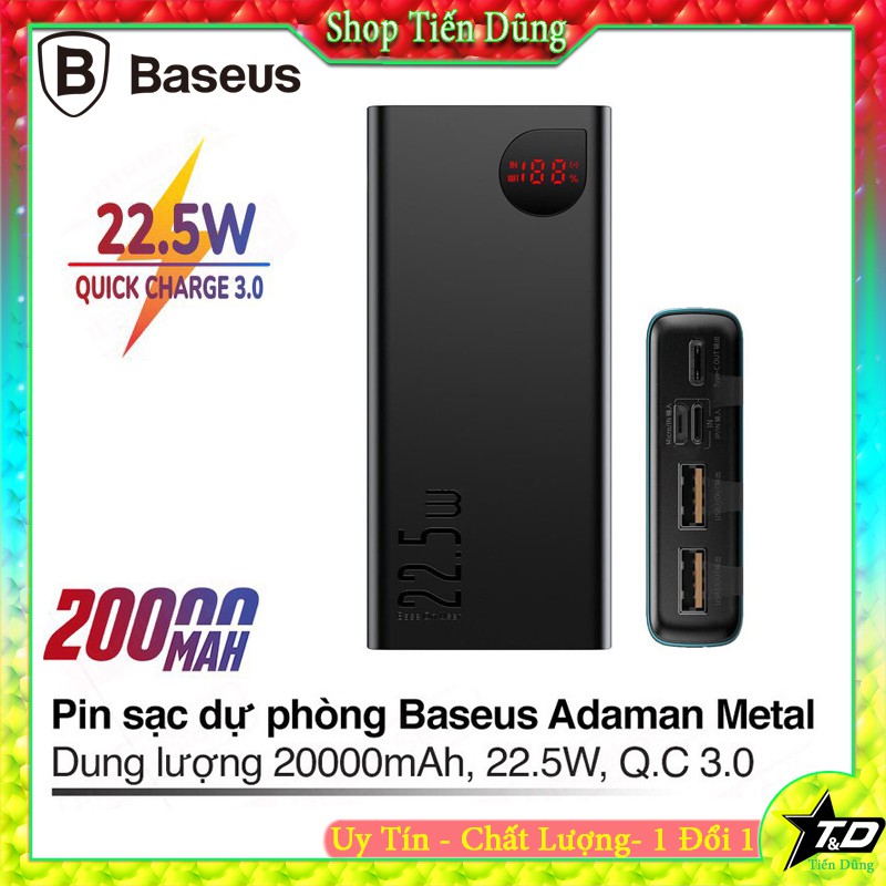 Giới thiệu Pin dự phòng sạc nhanh Baseus Adaman Metal Digital Display Quick Charge 3.0, 22.5W dung lượng 20000mAh