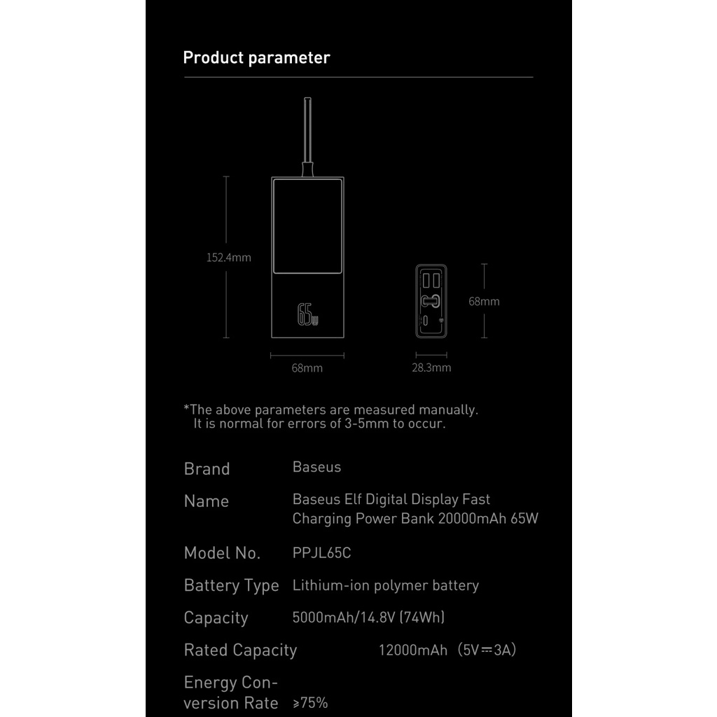 Giới thiệu Pin dự phòng sạc nhanh Baseus 65W Elf Digital Display Power Bank 20000mAh kèm cáp Type C - Hàng Chính hãng