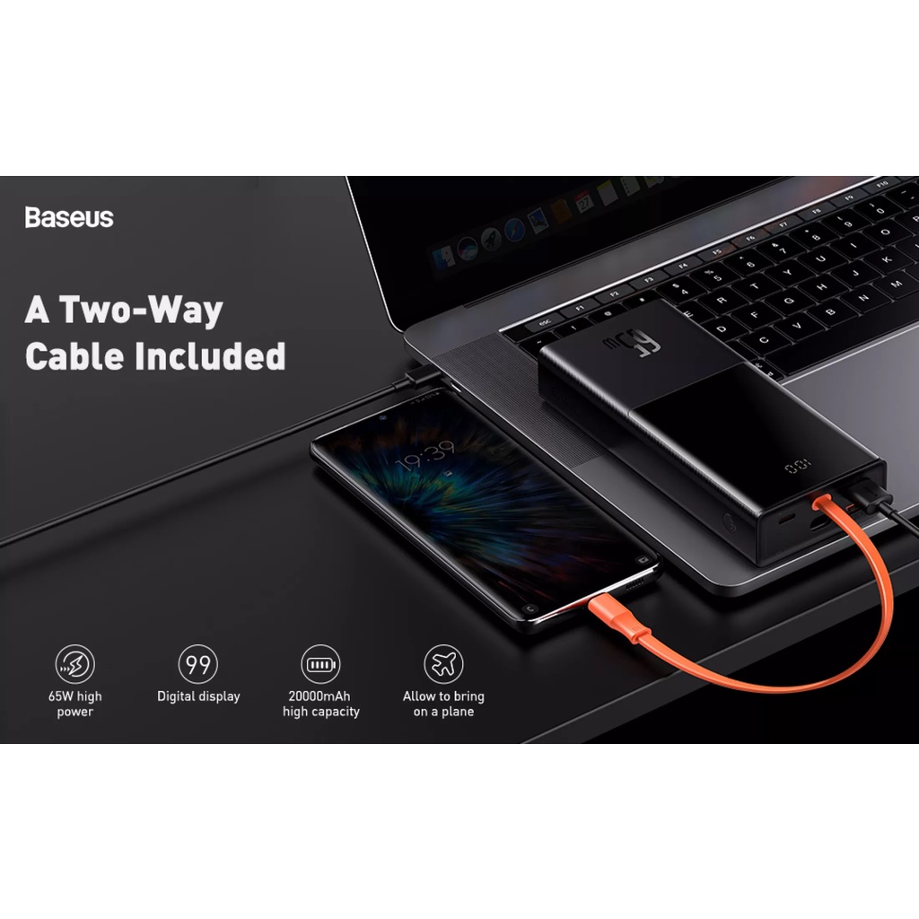 Pin dự phòng sạc nhanh Baseus 65W Elf Digital Display Power Bank 20000mAh kèm cáp Type C - Hàng Chính hãng