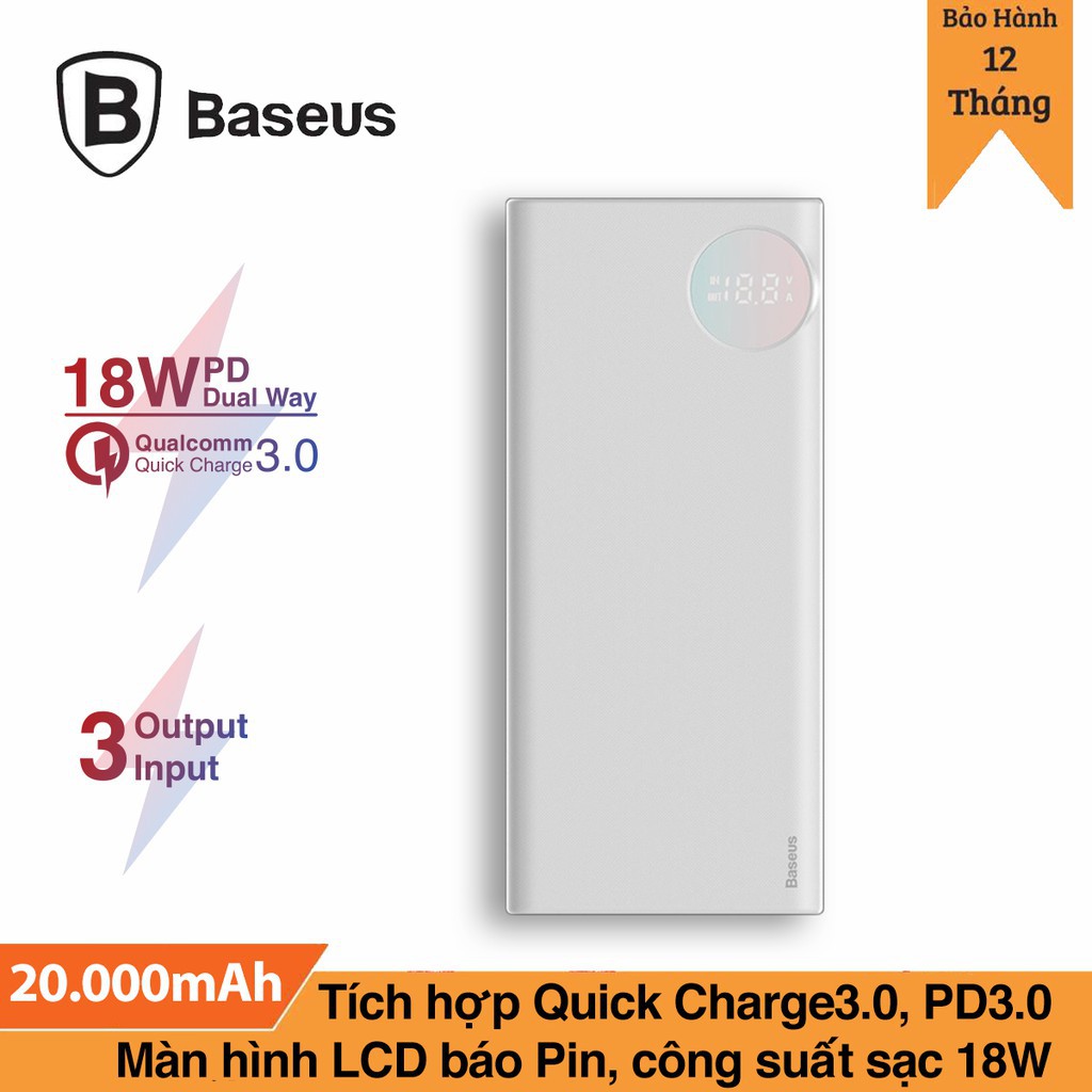 Pin dự phòng sạc nhanh PD3.0 Baseus Mulight Quick Charger dung lượng 20000mAh tích hợp màn hình LCD cho Smartphone"Bảo hành: 12 tháng, 1 đổi 1 trong tháng đầu nếu lỗi do nhà sản xuất.