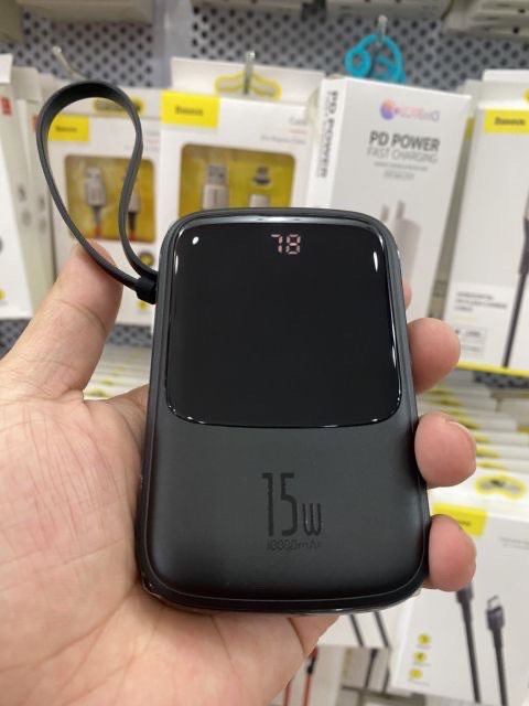 PIN SẠC DỰ PHÒNG BASEUS QPOW DIGITAL DISPLAY 3A 10.000MAH 15W KÈM CÁP IPHONE CHÍNH HÃNGThiết kế đẹp, nhỏ gọn , thời trang và siêu mỏng là ưu điểm nổi bật. Hai cạnh viền được vát mỏng 3D cho cảm giác mỏng và gọn hơn, cầm trên tay thoải mái hơn . Bạn có thể dễ dàng mang theo mọi lúc mọi nơi, thậm chí có thể bỏ vào túi quần mà không gây ra cảm giác vướng víu , khó chịu .