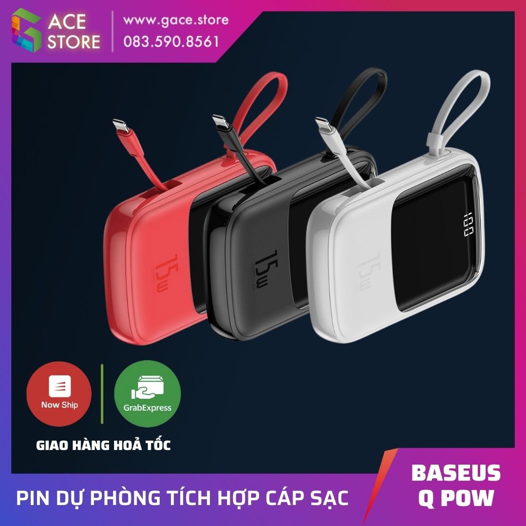 Điện Thoại & Phụ Kiện > Pin sạc dự phòng > 10000 - 20000mAh || Pin dự phòng tích hợp cáp sạc Baseus Q Pow Digital Display 10,000mAh (3A/ 15W, Fast Charge Power Bank With Cable )Còn hàng