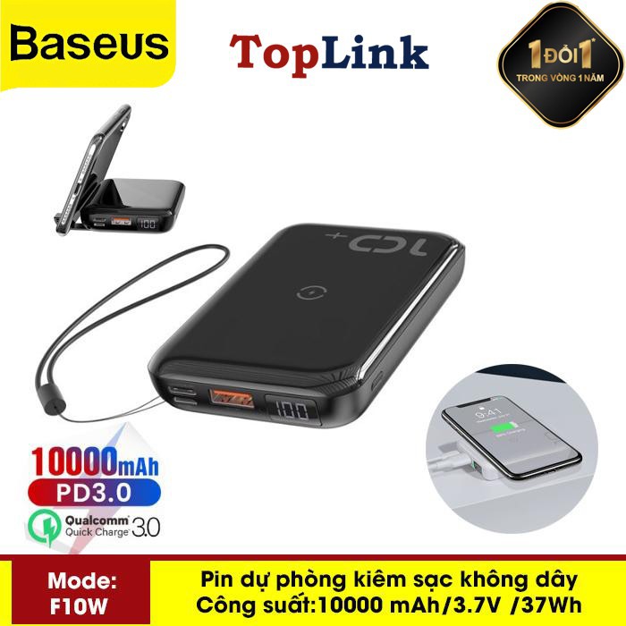 Pin Dự Phòng Tích Hợp Sạc Nhanh Không Dây Baseus F10W 10000mah (10W Wireless, 18W PD/ Quick Charge 3.0)Chào mừng bạn đến với TOPLINK - Thế Giới Phụ Kiện