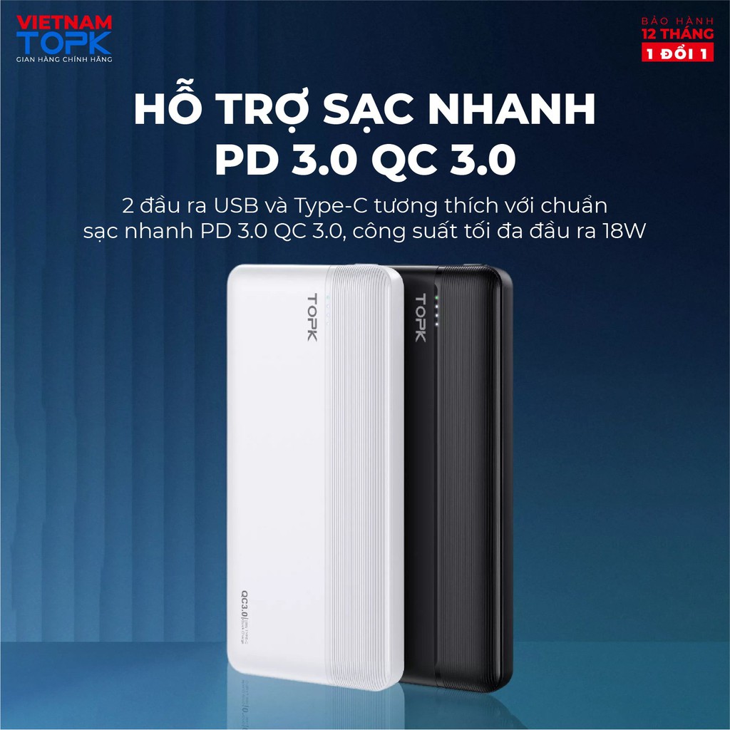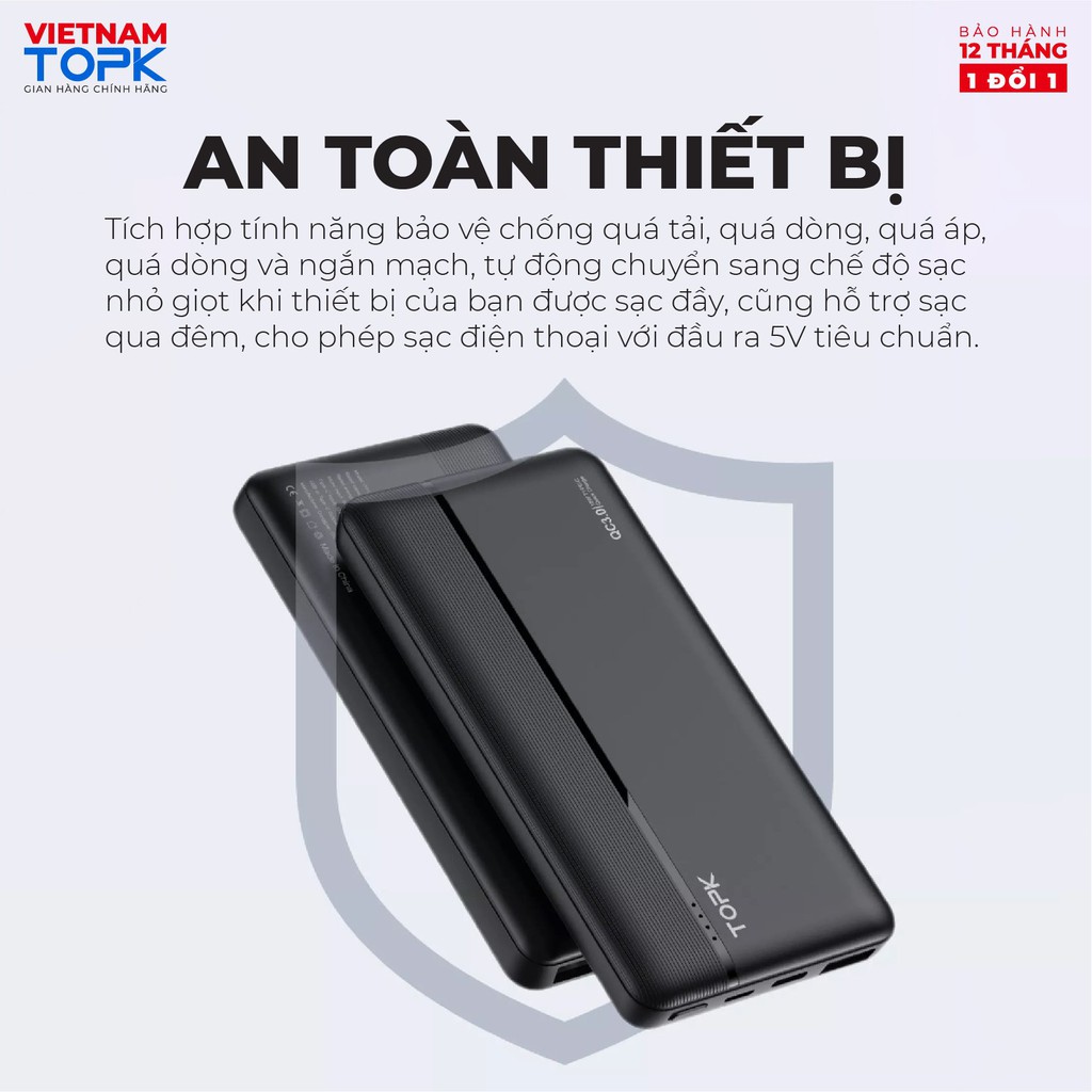 Sạc dự phòng 10000mAh TOPK I1015P - Sạc nhanh PD QC 3.0 18W - 2 cổng ra - Hàng chính hãng Bảo hành 12 tháng 1 đổi 1THỜI GIAN GIAO HÀNG SIÊU TỐC ĐỘ