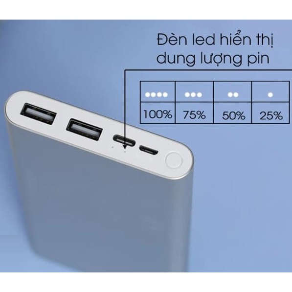 Sạc Dự Phòng Xiaomi 10000mAh Gen 3 New 2020 Sạc Nhanh QC 3.0 18WĐiểm thay đổi dễ nhận ra nhất trên Pin sạc dự phòng Xiaomi 10000mAh gen 3 đó là sự xuất hiện của cổng USB-A thứ 2 và cổng sạc vào tích hợp thêm cổng TYPE C. Chưa tính đến công nghệ mới, chỉ riêng việc nâng cấp lên 2 cổng sạc ra, cũng đã giúp việc sử dụng của người dùng tiện dụng hơn rất nhiều.