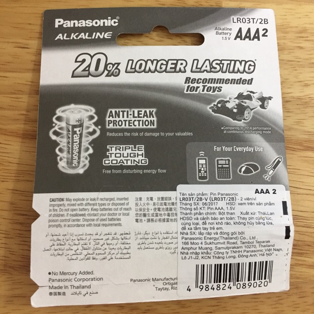 Pin đũa AAA LR03 Panasonic Alkaline1,5V vỉ 2 viên chính hãngLoại pin : Pin kiềm/ Alkaline