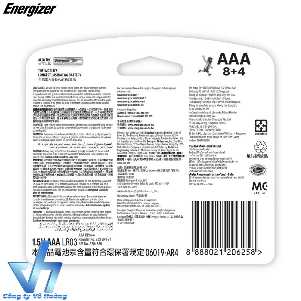 Cameras & Flycam > Phụ kiện máy ảnh > Đế pin || Pin đũa AAA Energizer Alkaline chống chảy E92 - 8 pin tặng kèm 4 pin freeCòn hàng