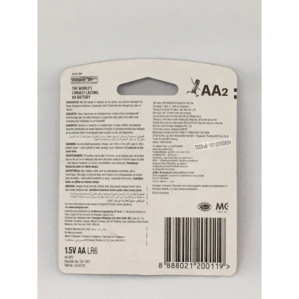 Pin đũa AAA Energizer max E92 vỉ 2 viênPin đũa AAA Energizer max E92 là loại pin kiềm alkaline, pin chính hãng xuất xứ made in Singapore