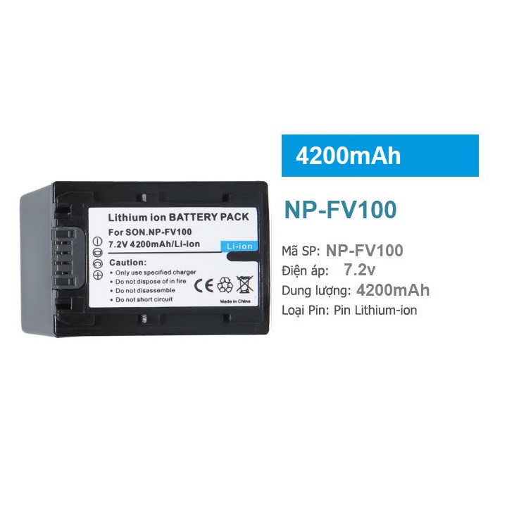 Pin Sony NP-FV100 có mật độ năng lượng khá cao, gấp đôi pin Ni-Cd thường. Pin Lithium lại rất thân thiện môi trường, không có các các yếu tố kim loại độc hại trong vấn đề xử lý thải.