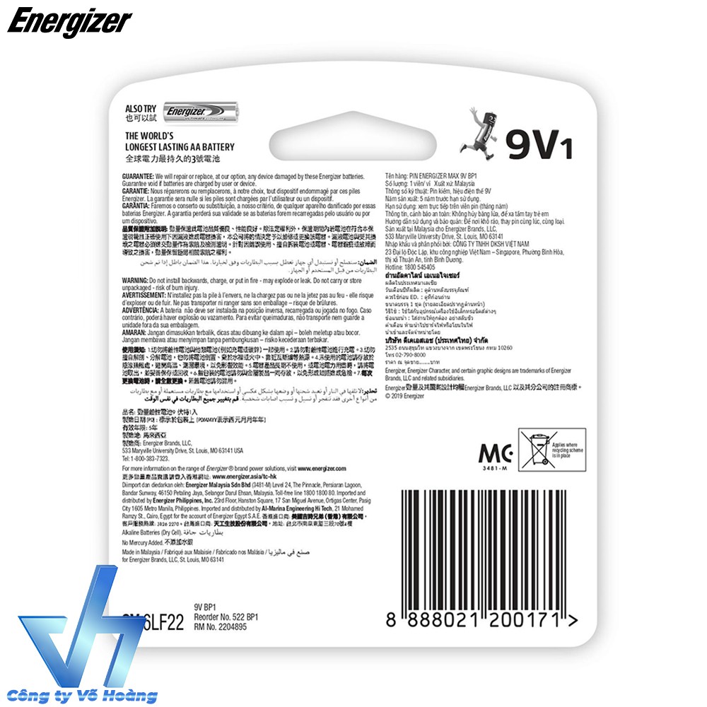 Thiết Bị Điện Gia Dụng > Pin || Pin Energizer 9V Alkaline BP1-6LF22Còn hàng