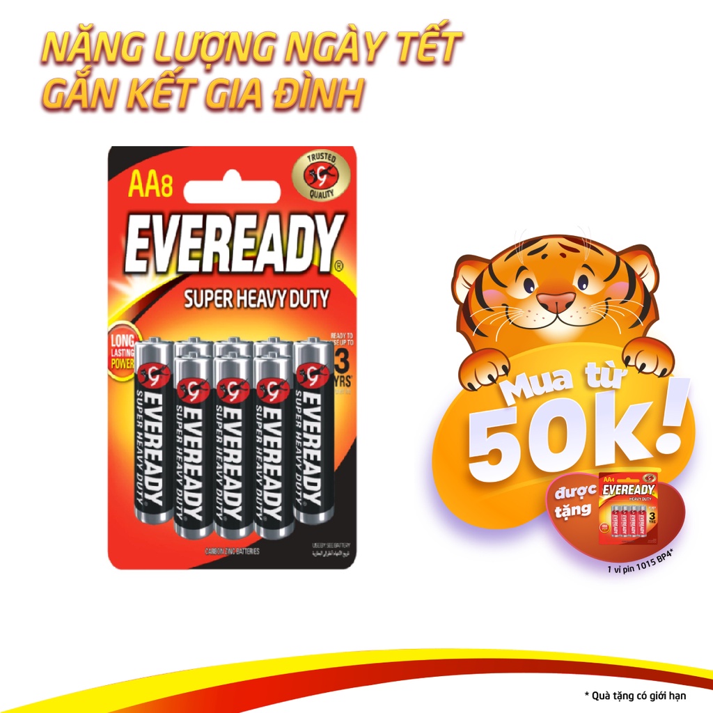 Tên sản phẩm: PIN EVEREADY SUPER HEAVY DUTY 1215 BP8 AASố lượng: 8 viên.