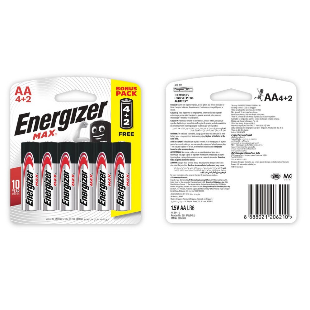 Tên sản phẩm: PIN ENERGIZER MAX E91 BP4+2 AASố lượng: 6 viên.