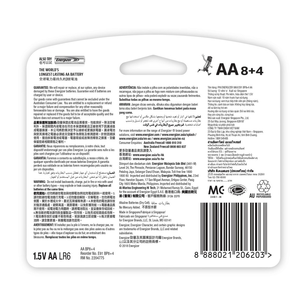 Thiết Bị Điện Gia Dụng > Pin || Pin Energizer Max AA E91 BP8+4 - 100628299Còn hàng