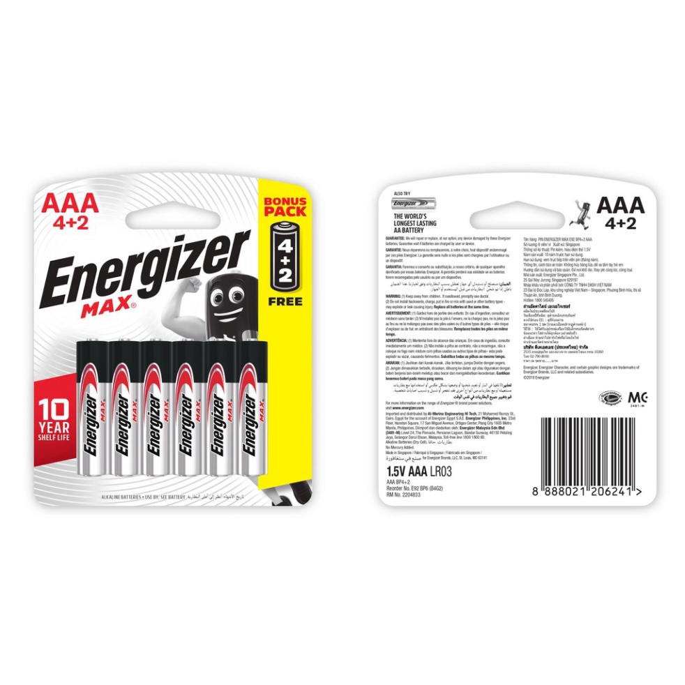 Tên sản phẩm: PIN ENERGIZER MAX E92 BP4+2 AAASố lượng: 6 viên.