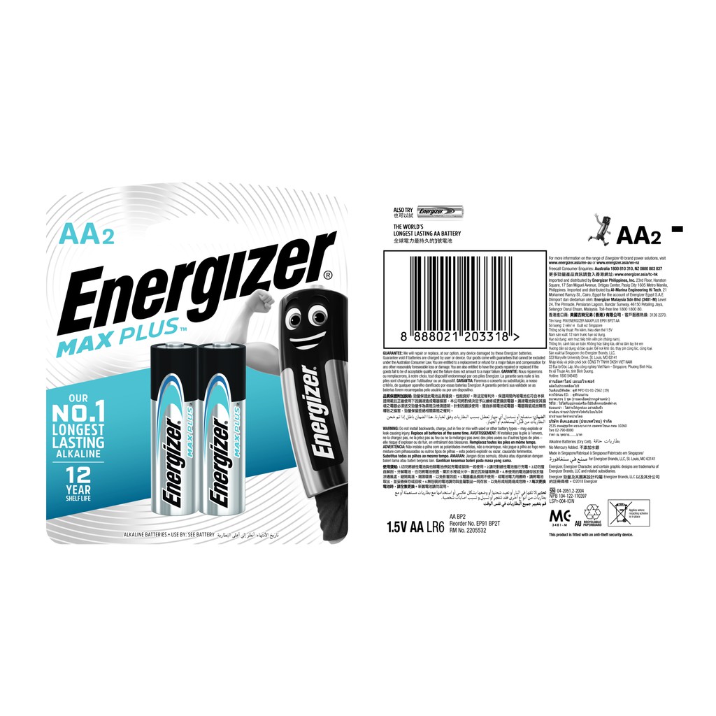 Tên sản phẩm: PIN ENERGIZER MAX PLUS EP91 BP2 AASố lượng: 2 viên.