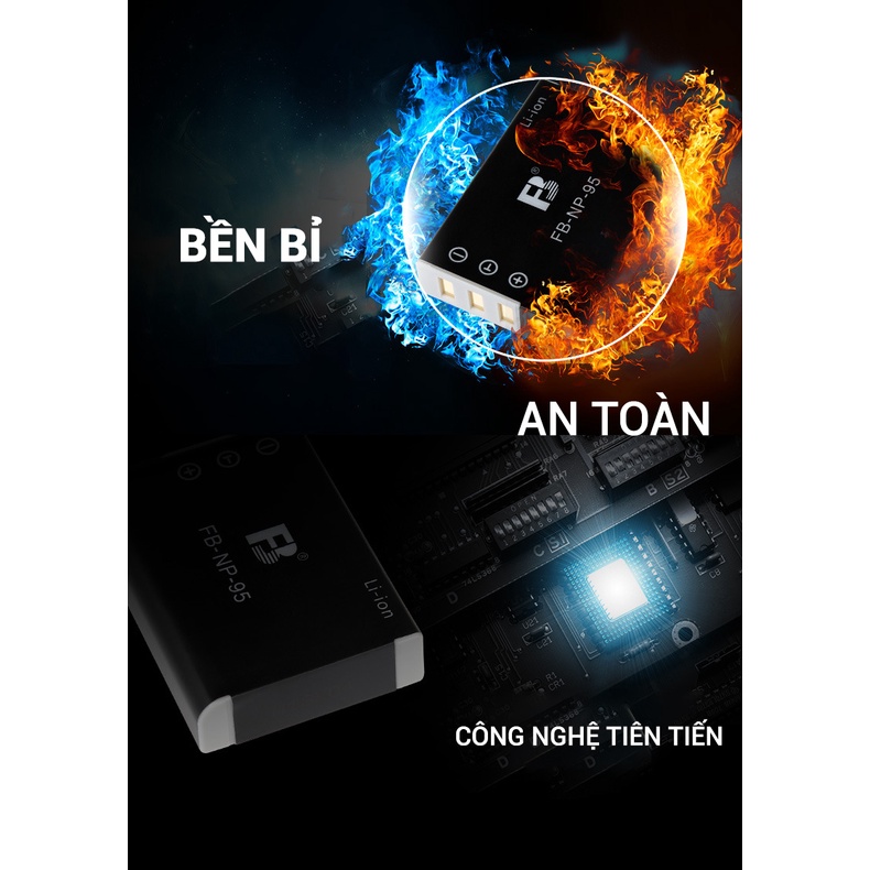 Không giống như những loại pin sạc thương hiệu khác trên thị trường. Pin sạc FB-NP-95 sử dụng công nghệ sản xuất pin Lithium-ion tiên tiến nhất và có dung lượng pin thực 100%, cung cấp cho người sử dụng một thời lượng pin thoải mái để có thể sử dụng chụp ảnh, quay phim.
