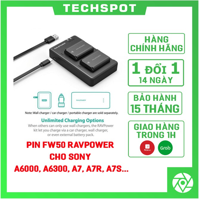 Bộ 2 pin + sạc đôi RAVPower NP-FW50 cho Sony A6000, A6300, A7, A7R, A7S..., Hàng chính hãngSản phẩm thương hiệu RAVPower (Mỹ), Hàng chính hãng RavPower chất lượng đảm bảo!