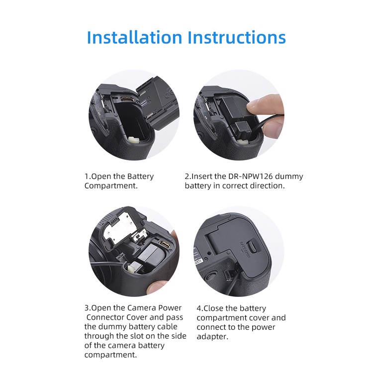 - Bộ ghép nối pin giả thực tế cho pin NP-W126 bộ chuyển đổi nguồn điện hữu ích cho máy ảnh.