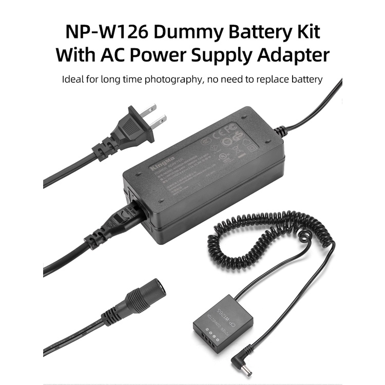 Bộ pin giả KingMa NP-W126 với Bộ chuyển đổi nguồn điện EU plug Power adapter