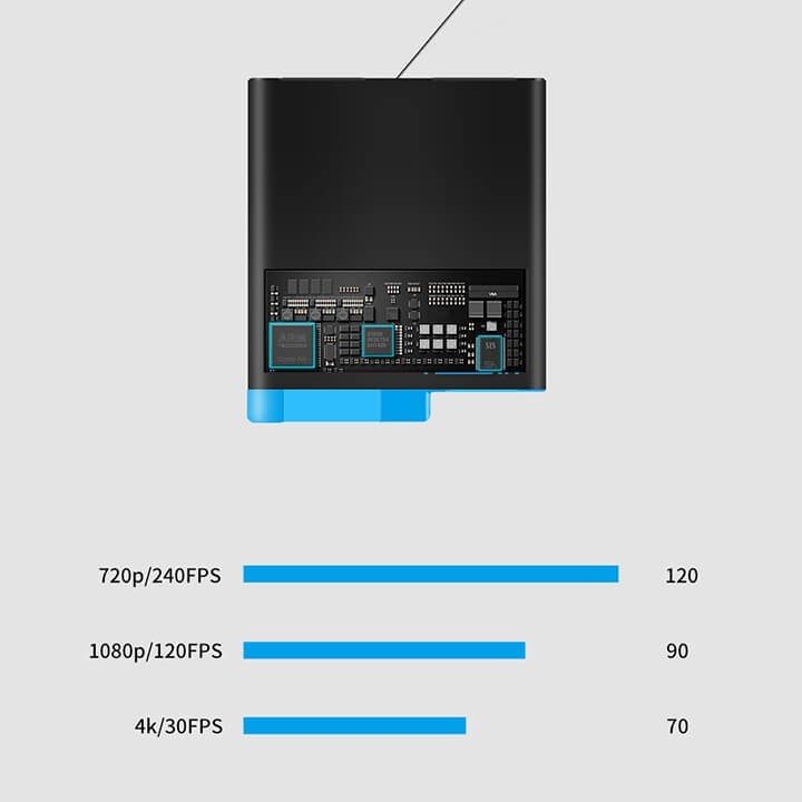 Với cục pin thay thế chính hãng Telesin cho GoPro 5 và 6 có thể sử dụng liên tục như sau: