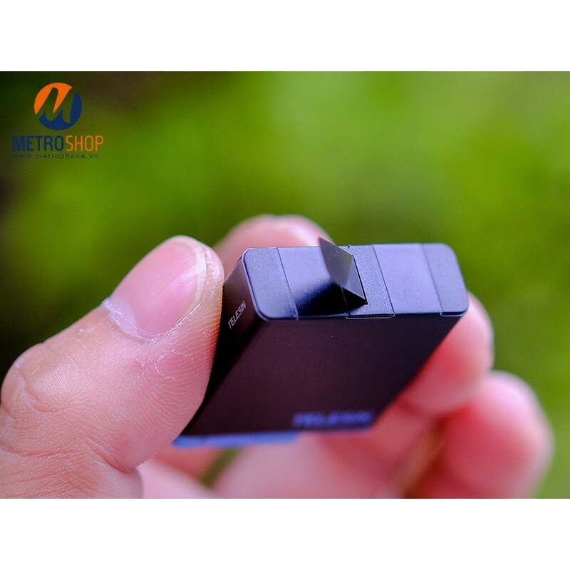 À đây là phần quan trọng. Ở trên thị trường, các loại pin GoPro nếu không đúng chất lượng. Phần kéo này sẽ rất lỏng lẻo. Hoặc có thể sẽ bị đứt trong quá trình sử dụng ngắn. Riêng Telesin thì qua bài test của Metrophone, rất chắc chắn. Khó mà có thể làm đứt được nếu không phải cố tình.