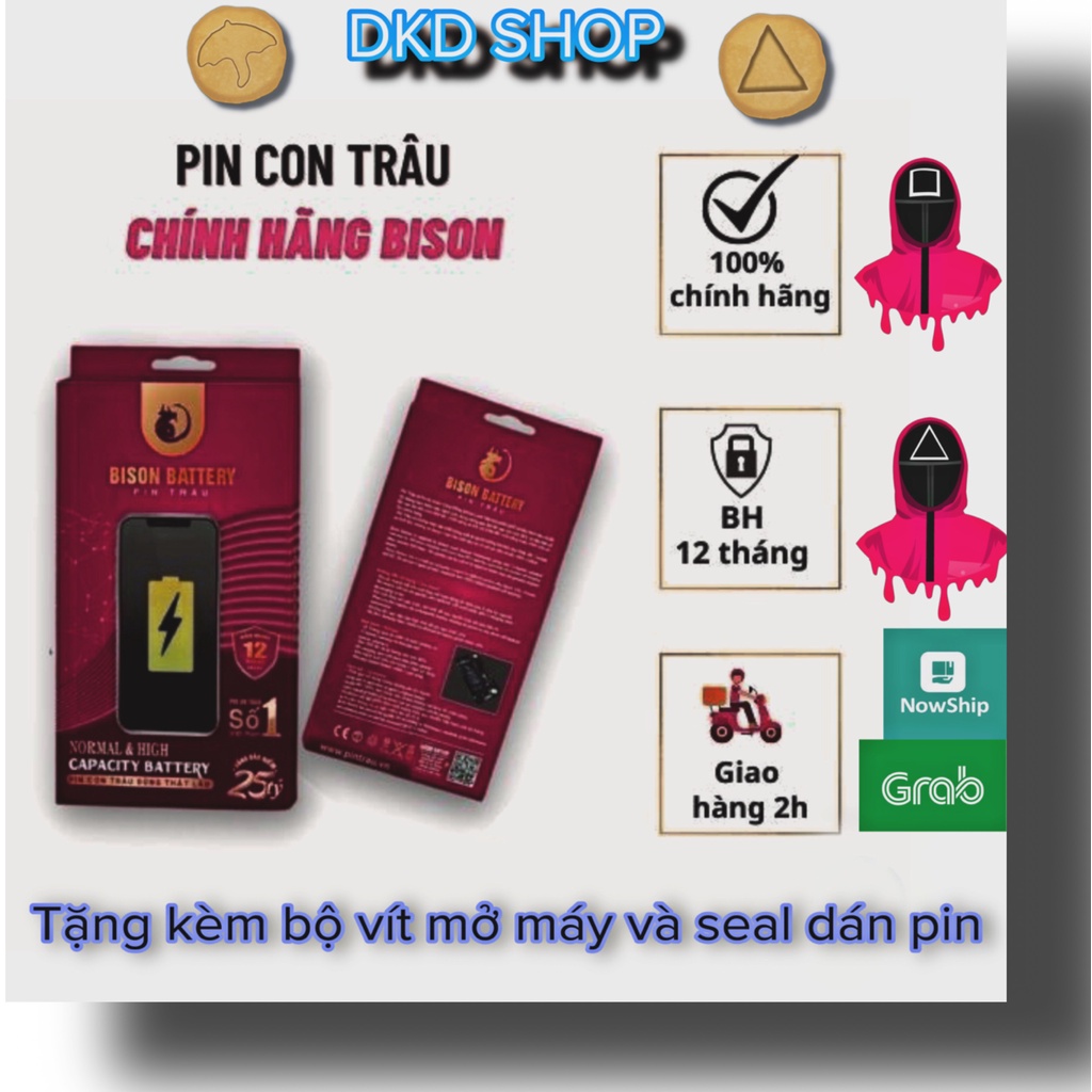 PIN IPHONE Bison con trâu dung lượng chuẩn chính hãng cho IPHONE 5S/6/6s/6plus/6splus/7/7plus/8/8plus/X/Xs/Xr/Xsmax