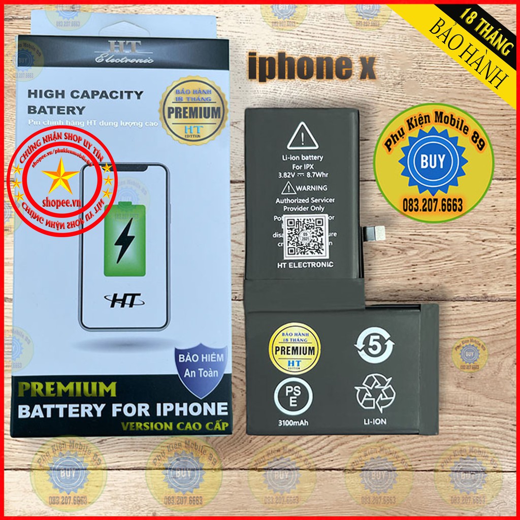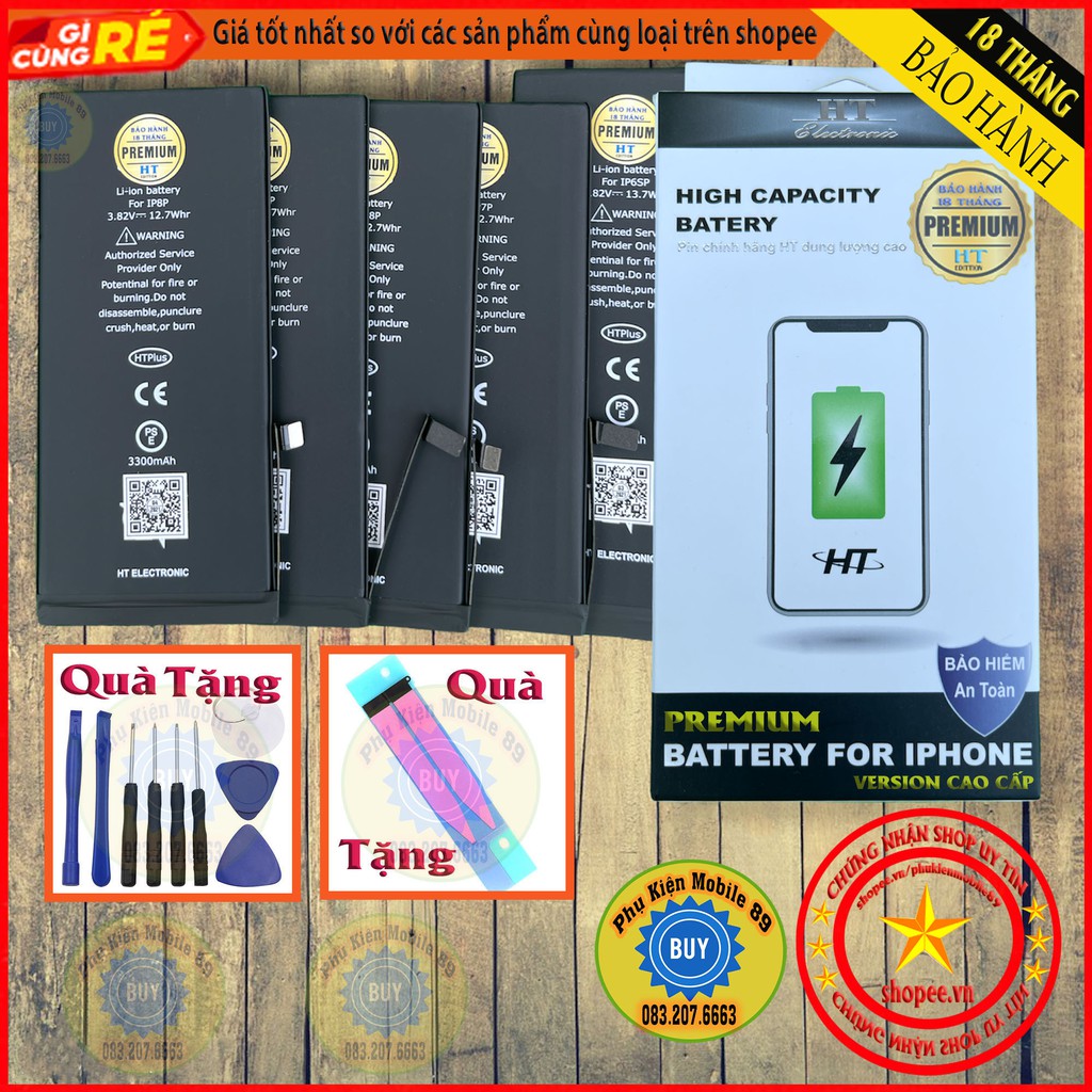 Pin iphone Dung Lượng Cao HT Bản Cao Cấp Premium - Bh 18th-Chính hãng HT Cho iphone 5/6/6P/7/7P/8/8plus
