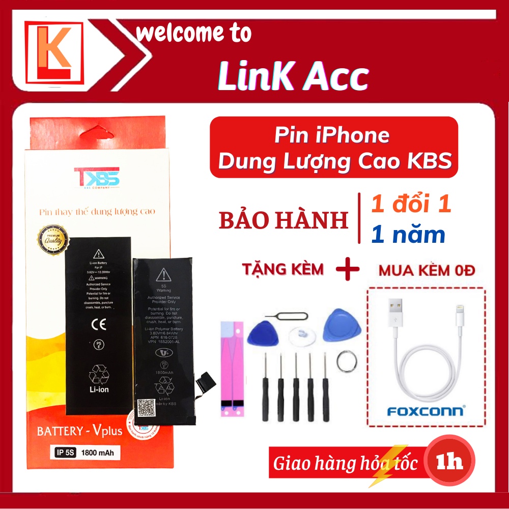 Pin iphone dung lượng cao KBS 5s/ 6/ 6s/ 6plus/ 6splus/ 7/ 7plus/ 8/ 8plus/ x, chính hãng, không nóng máy-Bảo hành 12T