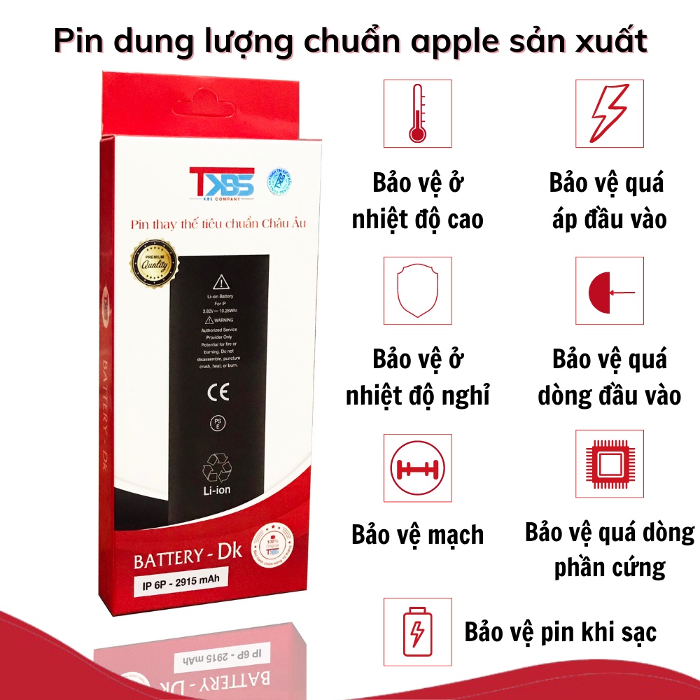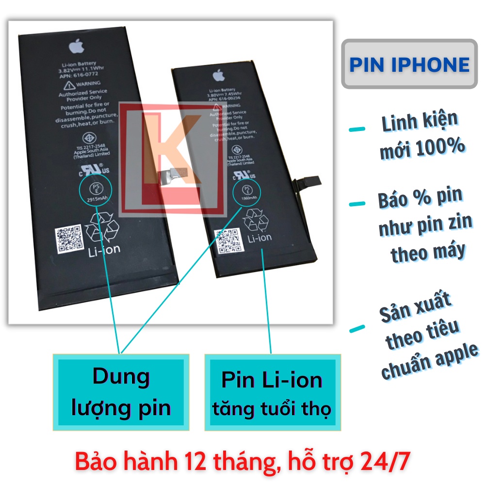 Giới thiệu Pin iphone KBS chính hãng 5, 5s, 5se, 6, 6s, 6plus, 6splus, 7, 7plus, 8, 8plus, x, xs, xsmax chuẩn EU châu Âu- BH 1 năm