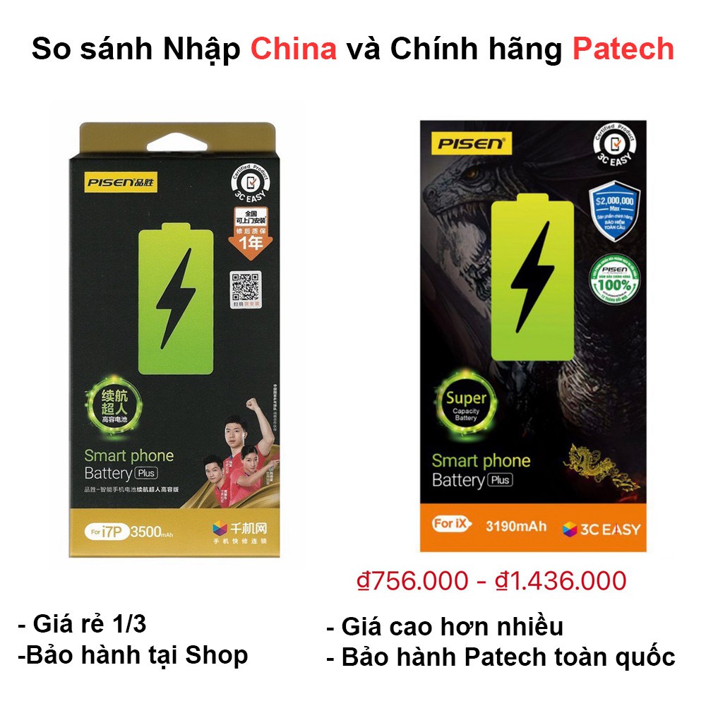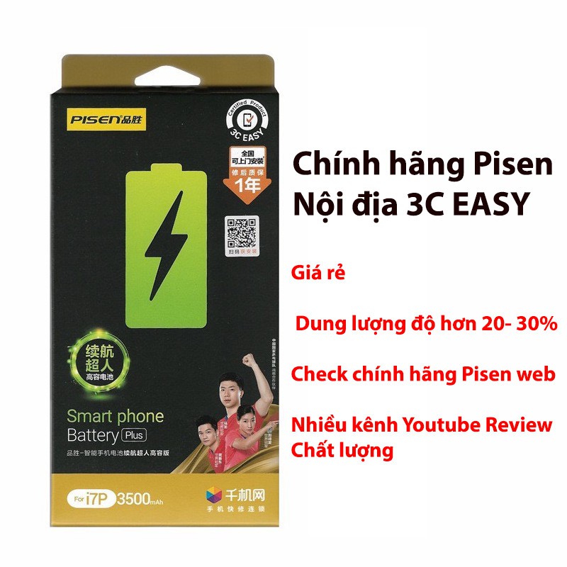 Pin IPhone PISEN Dragon nội địa trung dung lượng siêu cao cho Iphone 6,6s,6Plus,6SPlus,7,7Plus,8,8Plus, X - tistoreCHÚ Ý:
